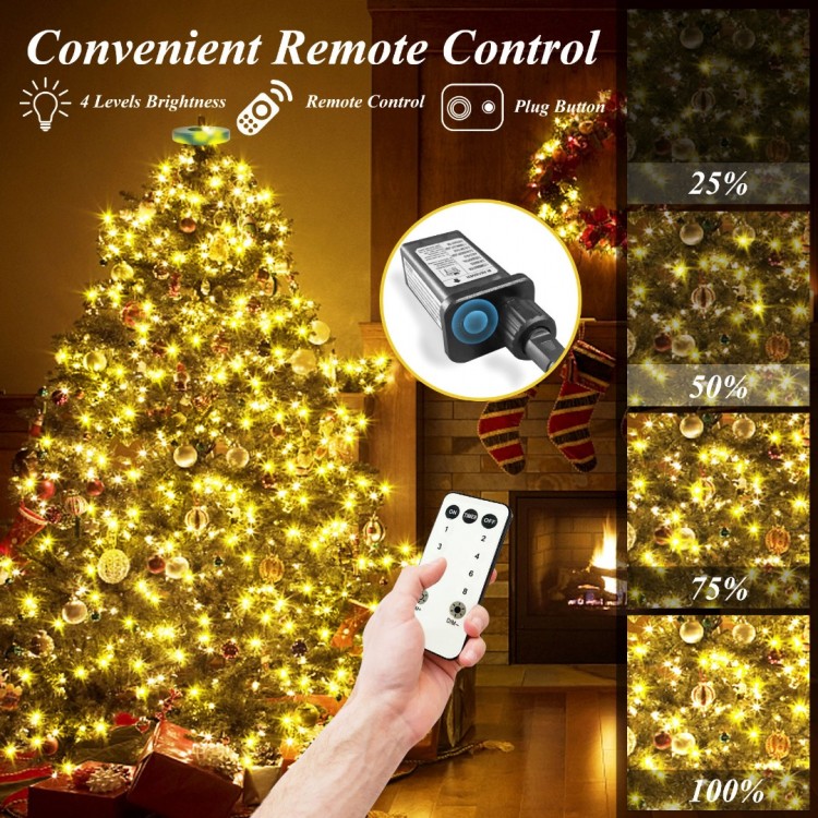 • 【8 Lighting Modes & 4 Levels Brightness】aneeway Christmas tree lights are available in 8 different lighting modes(Use remote control or press the button on the plug to switch the light modes). And the string lights have 4 levels of brightness (25%, 50%, 75%, 100%) for choice. A variety of blinking modes and brightness bring different light effects, which will make your Christmas tree and holiday more atmospheric!