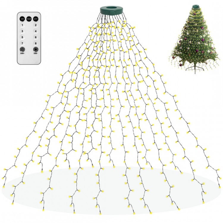 • 【Reasonable Design, Easy to Install】The Christmas decor light has 16 light strings, each line is 6.6ft (2m) long and equipped with 25 LEDs, a total of 400 LEDs. There is a mounting ring on the top of the Christmas lights, just fix the ring on the top of the Christmas tree and let the 16 string lights hang down from the tree to finish installation. The 16.4ft(5m) power cord allows you to place the tree lights anywhere, let the lights illuminate whole room to enjoy a wonderful fairy light show!